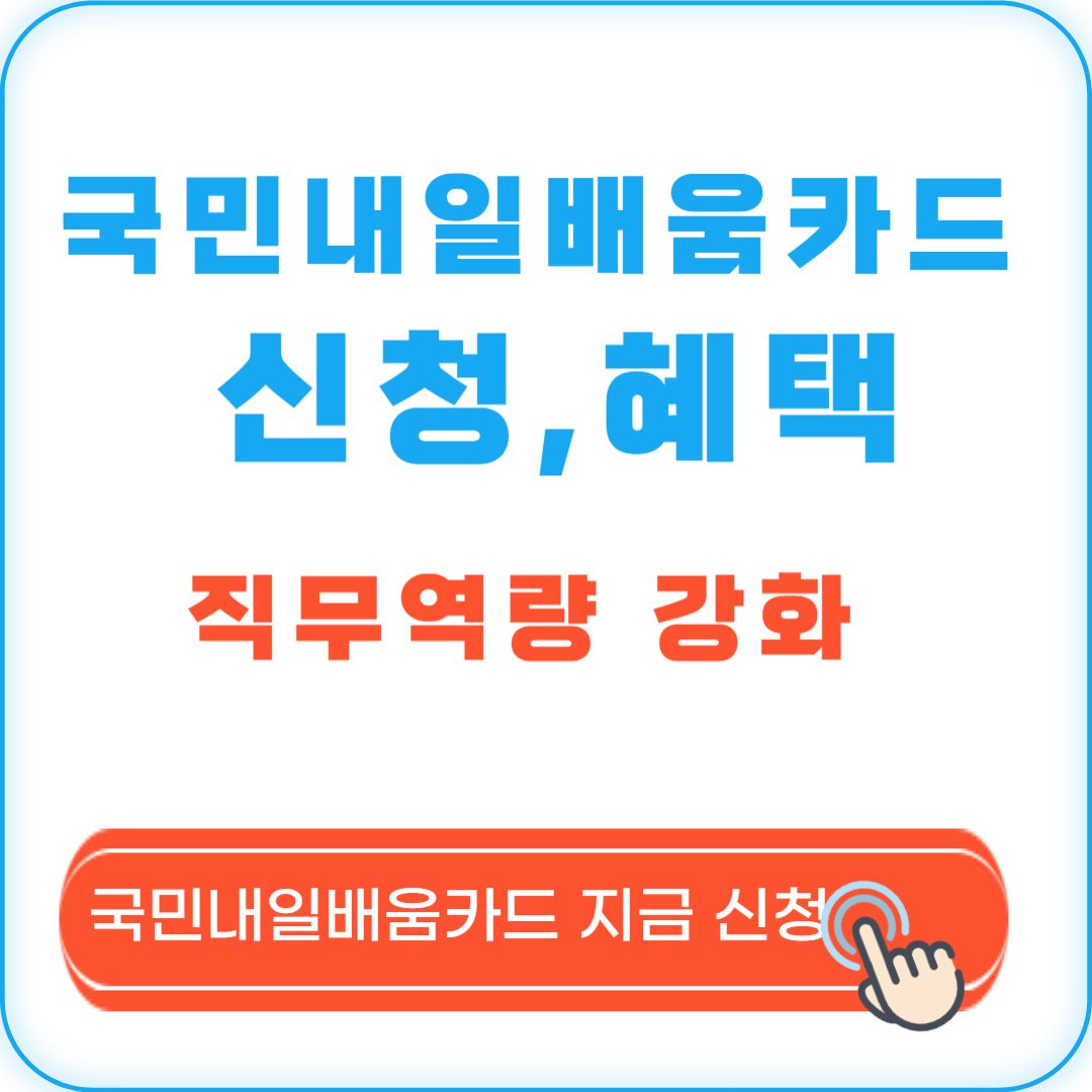 국민내일배움카드는 직업 훈련을 통해 역량을 키우고자 하는 이들에게 큰 도움을 주는 제도입니다. 국민내일배움카드를 활용하면 다양한 혜택을 받을 수 있으며, 신청 절차도 간단합니다. 이 글에서는 국민내일배움카드의 지원대상, 혜택, 신청 방법을 안내합니다.